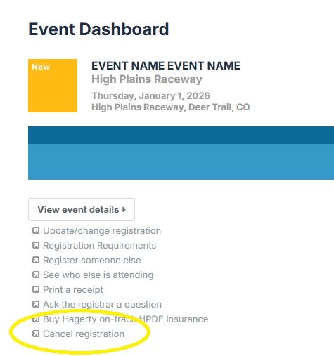 - All cancellations must be initiated through the registration website MotorsportReg.com. Phone calls, voicemails or emails will not be honored.